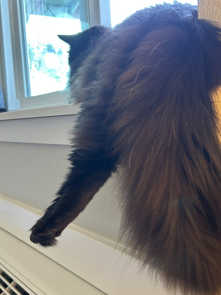 We have a cat named Fluffles. She’s just over a year old. We named her Fluffles because it suits her look. She’s fluffy. Especially her tail. I was informed that a Fluffle is a group of rabbits, but only people in Canada call a group of rabbits such. A Fluffles is more than one group…